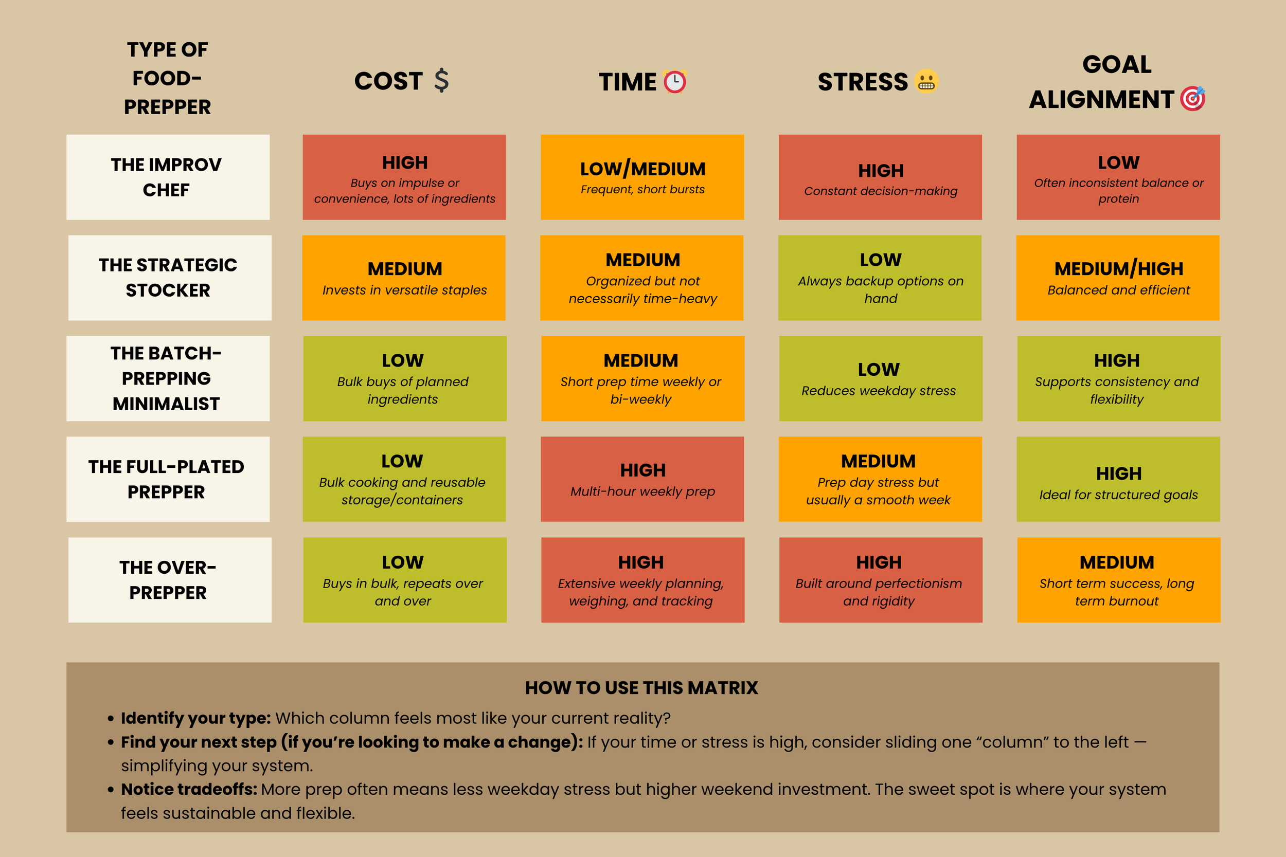 Below are five types of food preppers (cleverly named by ChatGPT after I described the types to her!) — see where you land, and if there’s changes you’re looking to make, maybe where you’d like to move toward next.